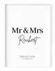 Feiere die Hochzeit mit dem "Mr. & Mrs." Poster! Personalisiere es mit Namen und Datum und verschenke es als einzigartiges Geschenk. Perfekt als Geschenk für das glückliche Paar. Schön und individuell - genau wie die Liebe.